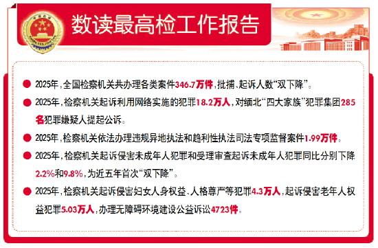 【解讀】“‘強(qiáng)化檢察監(jiān)督’是貫穿報(bào)告始終的一條主線(xiàn)。”楊劍波介紹說(shuō),持續(xù)提升法律監(jiān)督質(zhì)效,推動(dòng)刑事、民事、行政、公益訴訟“四大檢察”全面協(xié)調(diào)充分發(fā)展。2025年,最高檢為精準(zhǔn)監(jiān)督趨利性執(zhí)法司法問(wèn)題,逐步建立了一套從線(xiàn)索發(fā)現(xiàn)、線(xiàn)索研判到督辦交辦、辦結(jié)反饋的全流程機(jī)制。截至2025年12月,最高檢、省級(jí)檢察院督辦重點(diǎn)案件505件。在推進(jìn)專(zhuān)項(xiàng)監(jiān)督中,注重監(jiān)督糾正經(jīng)營(yíng)主體和人民群眾反映強(qiáng)烈的突出問(wèn)題,注重從制度機(jī)制層面剖析根源、堵住漏洞,推動(dòng)實(shí)現(xiàn)標(biāo)本兼治,鞏固深化監(jiān)督成果。研究起草依法加強(qiáng)刑事訴訟查封、扣押、凍結(jié)等強(qiáng)制措施監(jiān)督工作的規(guī)范性文件,建立健全加強(qiáng)跨省涉企刑事案件法律監(jiān)督機(jī)制,努力從源頭上推動(dòng)解決違規(guī)異地執(zhí)法和趨利性執(zhí)法司法問(wèn)題。