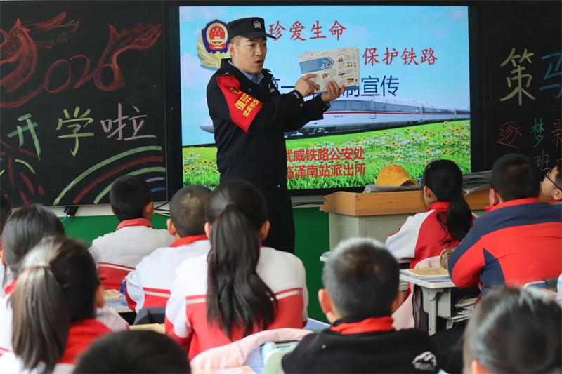 為切實筑牢鐵路沿線校園安全防線,提升中小學(xué)生鐵路安全意識與自我防護(hù)能力,近日,甘肅蘭州鐵路公安局武威公安處組織管內(nèi)各派出所民警深入轄區(qū)20余所中小學(xué),開展“法治安全進(jìn)校園”主題宣傳活動,以情景體驗、趣味互動、家校聯(lián)動等多元舉措,將安全知識送進(jìn)課堂、傳遞到家庭,為青少年健康成長保駕護(hù)航。