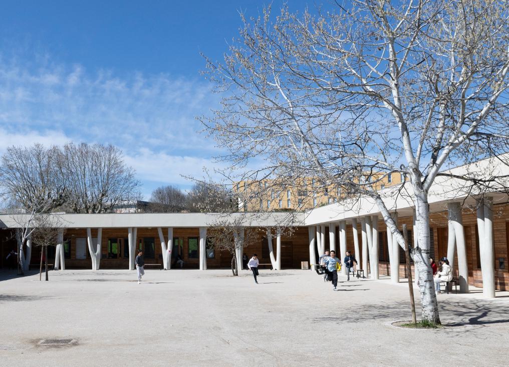3月12日,在法國馬諾斯克,普羅旺斯-阿爾卑斯-藍色海岸大區(qū)國際學校學生在校園內玩耍。新華社記者 鄔惠我 攝