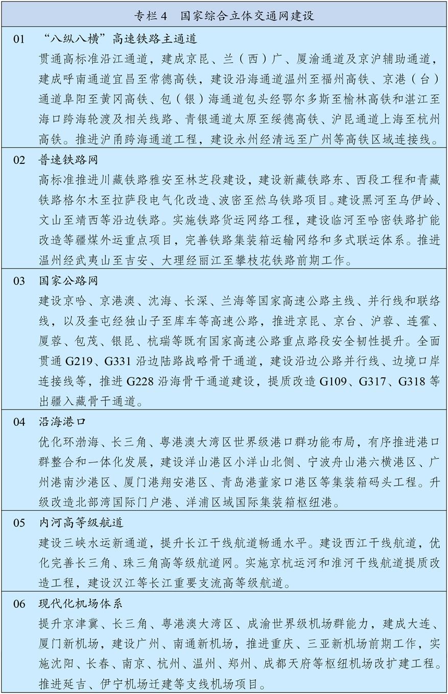 加強(qiáng)港澳與內(nèi)地經(jīng)貿(mào)、科技、人文等合作,完善便利港澳居民在內(nèi)地發(fā)展和生活政策措施。有序推進(jìn)與內(nèi)地金融市場互聯(lián)互通,深化與內(nèi)地產(chǎn)學(xué)研創(chuàng)新協(xié)同。深化粵港澳合作,持續(xù)推動(dòng)重點(diǎn)領(lǐng)域合作實(shí)現(xiàn)突破,促進(jìn)港口、機(jī)場和軌道交通協(xié)同發(fā)展,建設(shè)廣州至珠海(澳門)高鐵,推進(jìn)港深西部鐵路前期工作。深化琴澳一體化發(fā)展,高質(zhì)量建設(shè)前海、南沙、河套等重大合作平臺(tái)。建設(shè)澳門國際機(jī)場橫琴前置貨站,推進(jìn)澳琴國際教育(大學(xué))城建設(shè),支持澳門高校在橫琴延伸辦學(xué)。健全香港、澳門在國家對(duì)外開放中更好發(fā)揮作用機(jī)制,支持港澳深度參與高質(zhì)量共建“一帶一路”,發(fā)揮專業(yè)服務(wù)優(yōu)勢協(xié)助企業(yè)“走出去”。發(fā)揮港澳在中西文明交流互鑒中的重要窗口作用。
