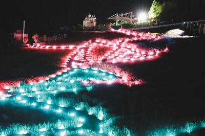 8月1日晚,僑鄉(xiāng)福建省閩清縣瓷天下·海絲谷景區(qū)被燈光秀點(diǎn)亮。以地圖上的福州為起點(diǎn),燈帶順著海絲沿線國家次第亮起,一張“海絲地圖”隨風(fēng)搖曳,吸引了大量游客。