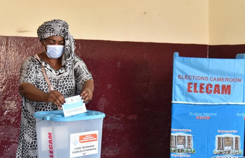 12月6日,在喀麥隆雅溫得,一名選舉人參加大區(qū)議會(huì)選舉投票。