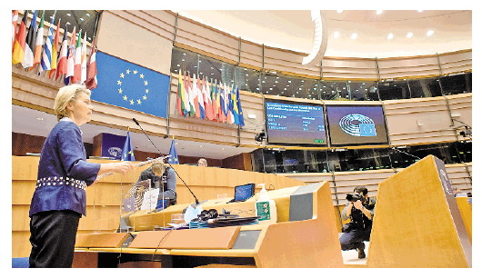 歐盟今年2月啟動(dòng)《數(shù)字服務(wù)法案》和《數(shù)字市場(chǎng)法案》立法工作。歐盟領(lǐng)導(dǎo)人就此進(jìn)行了數(shù)輪磋商。12月15日,歐盟委員會(huì)公布了《數(shù)字服務(wù)法案》及《數(shù)字市場(chǎng)法案》草案。圖①為歐盟委員會(huì)領(lǐng)導(dǎo)人及法、德等歐洲主要國(guó)家領(lǐng)導(dǎo)人在布魯塞爾進(jìn)行磋商。圖②為歐盟委員會(huì)主席馮德萊恩。