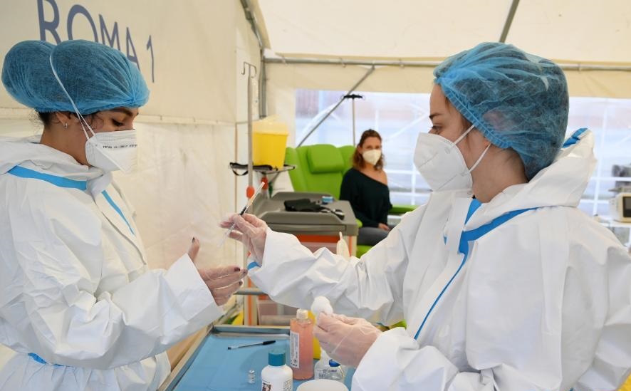 12月28日,在意大利羅馬一家醫(yī)院,醫(yī)護(hù)人員準(zhǔn)備進(jìn)行新冠疫苗接種。歐盟多個(gè)成員國(guó)27日正式啟動(dòng)新冠疫苗接種工作。首批接種的疫苗由美國(guó)輝瑞制藥有限公司與德國(guó)生物新技術(shù)公司聯(lián)合研發(fā)。新華社發(fā)(阿爾貝托·林格利亞攝)