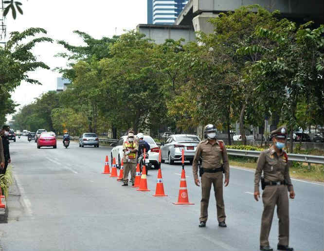 1月5日,警察在泰國(guó)曼谷的一處防疫檢查站工作。