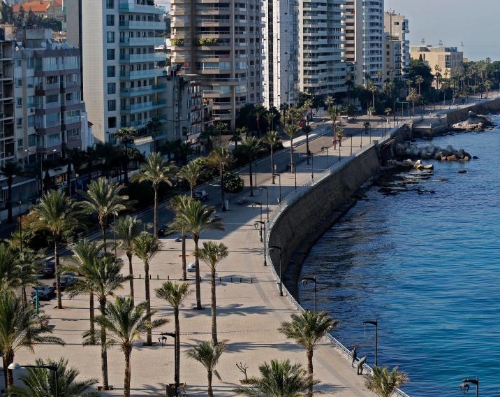 1月10日,黎巴嫩貝魯特的海邊步道上空空蕩蕩。