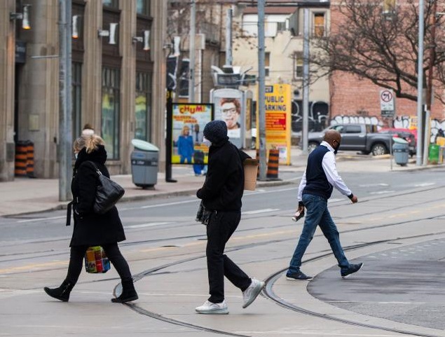 1月14日,人們戴口罩在加拿大安大略省多倫多出行。