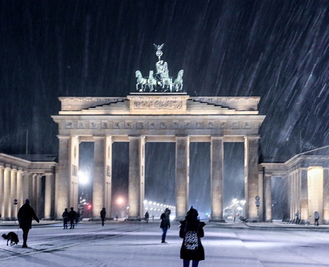 人民網(wǎng)訊 當(dāng)?shù)貢r(shí)間2021年1月29日,德國(guó)柏林大雪紛飛,勃蘭登堡門廣場(chǎng)被冰雪覆蓋。