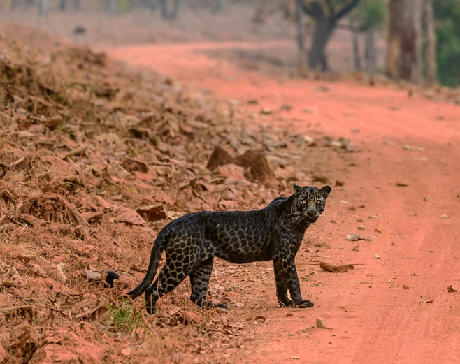 2月4日,印度馬哈拉施特拉邦,塔杜巴國(guó)家公園內(nèi)發(fā)現(xiàn)了一只極為罕見的雄性黑豹。(圖片來(lái)源:東方IC)