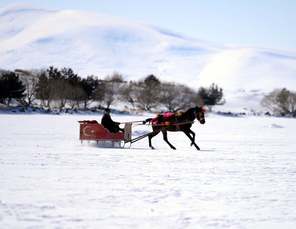 土耳其天寒地凍 冰湖上坐馬車愜意十足