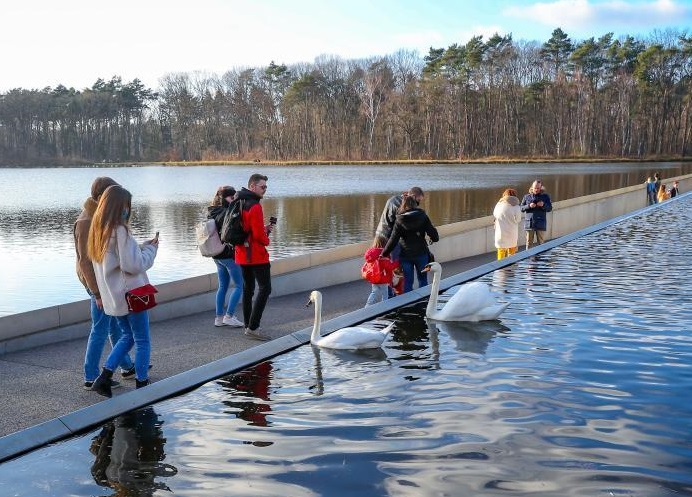 比利時(shí)林堡省波克萊克附近有一條200多米長(zhǎng)、從水塘中間穿過(guò)的特別通道。人們走在其中時(shí)視線(xiàn)剛好與水面齊平,宛如在水中穿行。這一獨(dú)特的體驗(yàn)吸引了眾多徒步和騎行愛(ài)好者。
