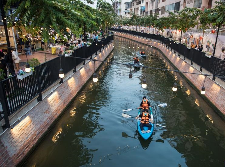 曼谷的翁昂運(yùn)河曾是一處影響城市景觀的臟亂差地區(qū),曼谷市政府從2014年開始對這里進(jìn)行徹底整治,拆除違建、清理河道,并邀請城市景觀設(shè)計(jì)師對周邊社區(qū)進(jìn)行改造升級。歷經(jīng)數(shù)年治理之后,這里成為集居住、經(jīng)商、文化集市、觀光于一體的濱河社區(qū)。每到周末,翁昂運(yùn)河步行街就會(huì)變成游客的熱門“打卡地”。