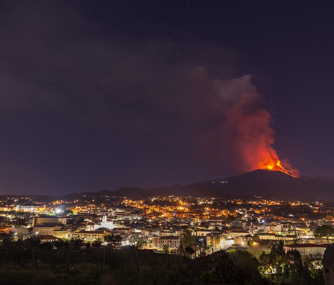 人民網(wǎng)訊 當(dāng)?shù)貢r(shí)間4月1日,意大利西西里島,埃特納火山噴發(fā)。