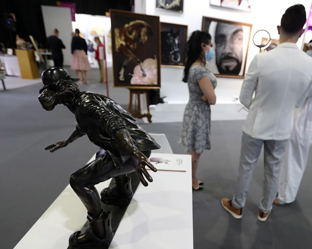 當(dāng)?shù)貢r間4月7日,迪拜,迪拜世界藝術(shù)博覽會舉行。此次藝術(shù)博覽會將一直持續(xù)至4月10日,展出超過2000件藝術(shù)作品。(圖片來源:東方IC)
