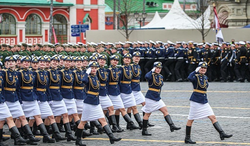 5月9日,在俄羅斯莫斯科舉行的勝利日閱兵式上,女兵列隊走過紅場。