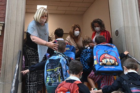 9月13日,學(xué)生在意大利博洛尼亞進入學(xué)校。9月13日后,意大利所有大區(qū)學(xué)校將陸續(xù)開學(xué)。根據(jù)意教育部公布的全國學(xué)校防疫措施,教職員工進入校園必須持有“綠碼”。
