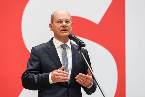9月27日,在德國首都柏林的社民黨總部,社民黨總理候選人朔爾茨出席新聞發(fā)布會。
