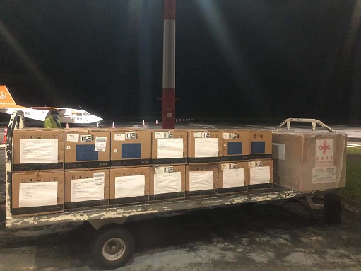 11月7日,在瓦努阿圖首都維拉港,中國援助瓦努阿圖第二批新冠疫苗抵達(dá)維拉港機(jī)場。