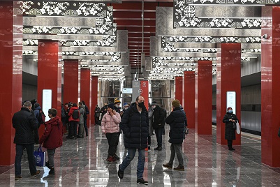 12月7日,由中國鐵建承建的莫斯科地鐵第三換乘環(huán)線西南段投入運行。俄羅斯總統(tǒng)普京以視頻連線形式出席通車儀式并宣布正式開通。2017年1月,中國鐵建中標莫斯科地鐵第三換乘環(huán)線西南段項目,標段全長5.4公里,包含阿明耶沃站、米丘林大街站、韋爾納茨基大街站3個車站和9條盾構(gòu)隧道建設任務,這也是俄羅斯首次在地鐵施工領域引進中國企業(yè)。走進米丘林大街地鐵站,紅色立柱、團壽紋、祥云等中國元素隨處可見。這里已經(jīng)成為中俄友誼的新地標,展現(xiàn)出“一帶一路”上的跨文化盛景。