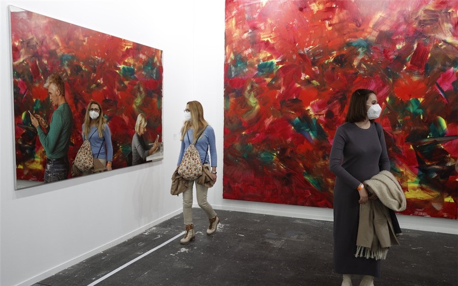人民網(wǎng)訊 當(dāng)?shù)貢r(shí)間2月27日,西班牙馬德里,2022馬德里當(dāng)代藝術(shù)博覽會的最后一天,參觀者在欣賞藝術(shù)品。