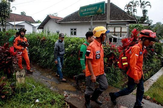 4日,在印度尼西亞?wèn)|爪哇省盧馬姜的薩皮圖朗村,救援人員疏散村民。
