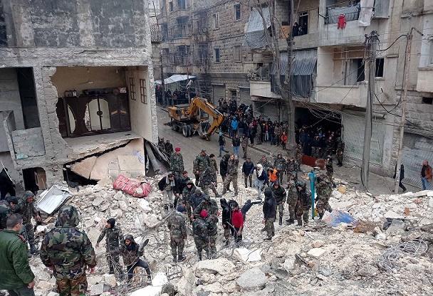 土耳其南部靠近敘利亞邊境地區(qū)2月6日發(fā)生強烈地震,敘北部主要城市阿勒頗多處房屋垮塌。