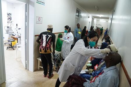 圖為2月28日,在吉布提首都吉布提市貝爾蒂醫(yī)院,醫(yī)療隊(duì)隊(duì)員正在為白內(nèi)障患者進(jìn)行術(shù)前檢查。新華社記者 韓旭 攝