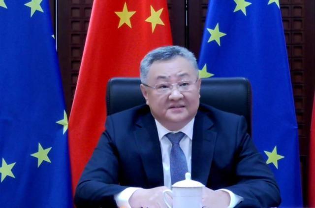 圖為中國(guó)駐歐盟使團(tuán)團(tuán)長(zhǎng)傅聰大使
