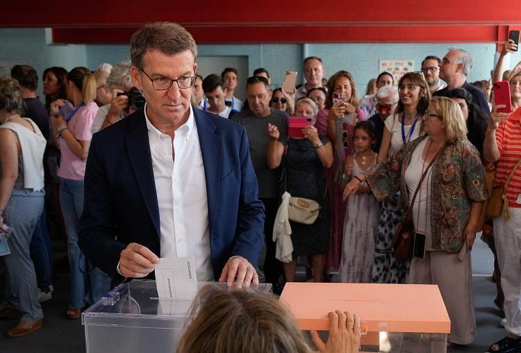 圖為23日,西班牙人民黨候選人費(fèi)霍在馬德里一處投票點(diǎn)內(nèi)投票。 新華社發(fā)(西班牙人民黨供圖)