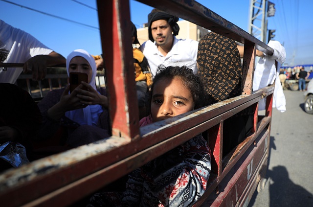 11月7日,在加沙地帶中部地區(qū),巴勒斯坦人向南部遷移。新華社發(fā)(亞西爾·庫迪攝)