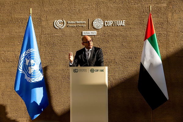 12月11日,在聯(lián)合國氣候變化迪拜大會期間,《聯(lián)合國氣候變化框架公約》執(zhí)行秘書西蒙·斯蒂爾回答記者提問。 新華社發(fā)(聯(lián)合國氣候變化迪拜大會供圖)