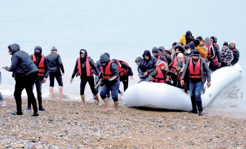 圖為一艘偷渡船抵達(dá)英國鄧杰內(nèi)斯角海岸。新華社發(fā)