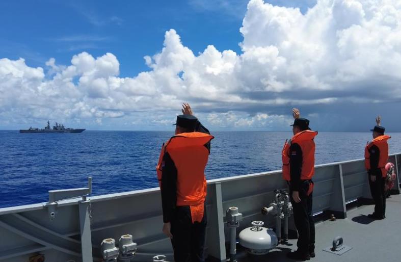 中俄“海上聯(lián)合-2025”聯(lián)合演習當地時間1日至5日在俄羅斯符拉迪沃斯托克附近??沼蚺e行。演習結束后,參與演習的中國海軍導彈驅逐艦紹興艦、綜合補給艦千島湖艦與俄羅斯海軍“特里布茨海軍上將”號大型反潛艦等3艘水面艦艇及2架艦載直升機組成聯(lián)合編隊,位西太平洋某海域組織海上聯(lián)合巡航。