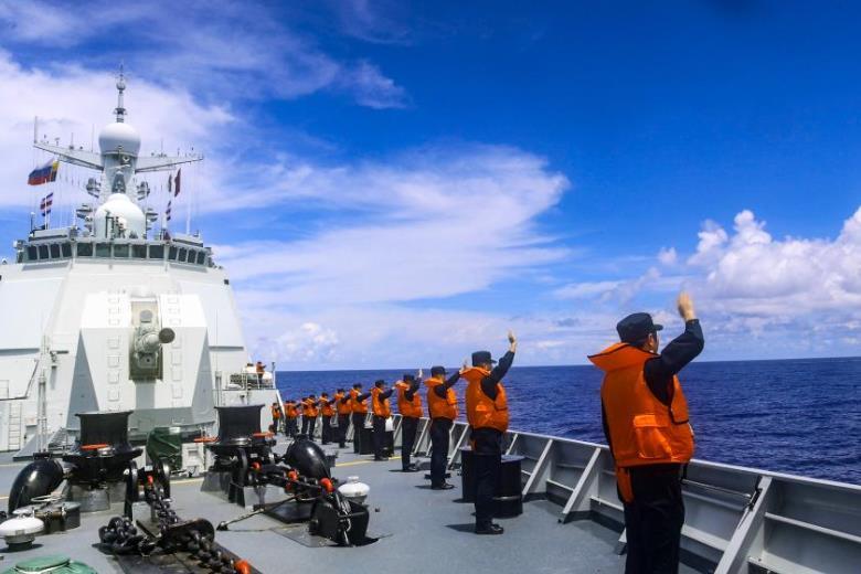 8月20日,中俄海上聯(lián)合編隊在西太平洋某海域舉行分航儀式,中方參演官兵向俄方艦艇揮手告別。新華社發(fā)(徐強攝)
