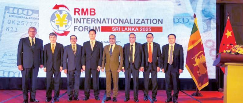 圖為10月29日,中國駐斯里蘭卡大使戚振宏(左四)出席在斯里蘭卡首都科倫坡舉辦的人民幣論壇。