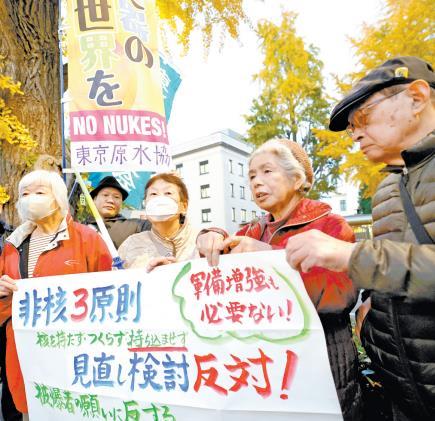 討論過程中,“無核三原則”的修訂計劃令人關(guān)注。據(jù)日本共同社報道,“無核三原則”指不擁有、不制造、不引進(jìn)核武器,長期以來是日本的基本國策。《日本經(jīng)濟(jì)新聞》報道稱,日本政府內(nèi)部出現(xiàn)的修訂論調(diào)是從“無核三原則”中刪除“不引進(jìn)”的表述,意在使美軍能向日本運(yùn)進(jìn)核武器,提高核威懾力。