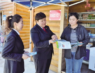 圖為曼司亞(中)在蒲類海旅游景區(qū)開展法律宣傳。巴里坤哈薩克自治縣人民法院供圖