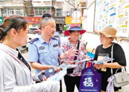 圖為王小平(左二)深入社區(qū)開(kāi)展反詐宣傳。 曹新菊 攝