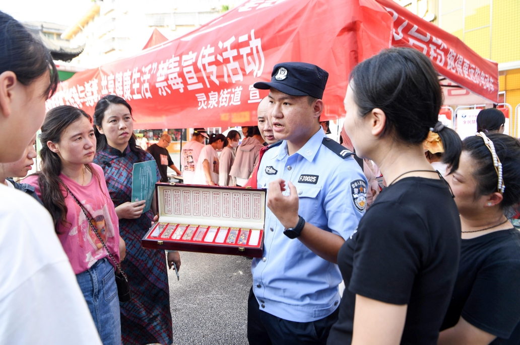 近日,江西省宜春市袁州區(qū)靈泉街道聯(lián)合靈泉派出所在鼓樓廣場開展“全民參與禁毒、共享健康生活”禁毒宣傳活動(dòng),通過展示毒品模型、以案釋法、現(xiàn)場答疑等方式,全面提升人民群眾識(shí)毒、防毒、拒毒意識(shí),營造全民禁毒濃厚氛圍。
