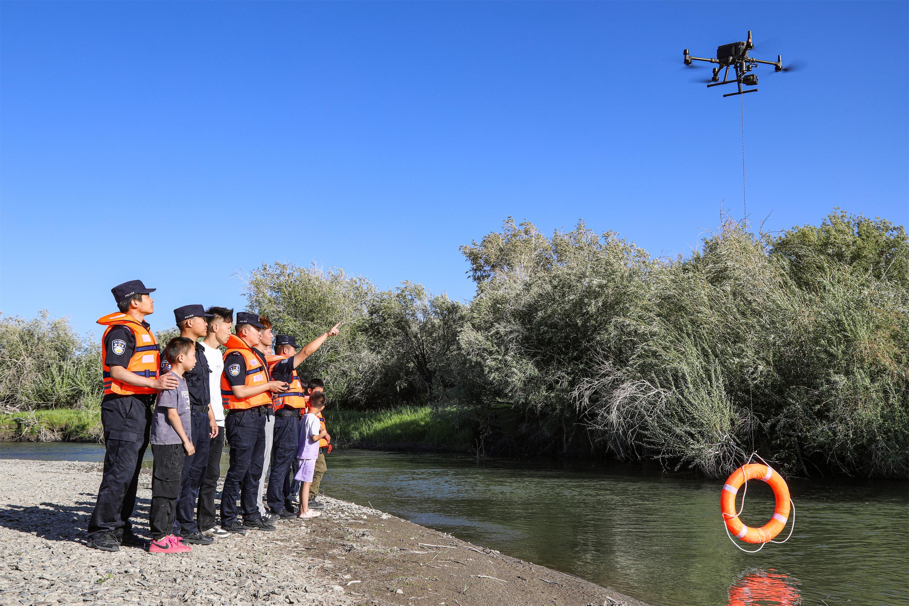 為切實(shí)保障人民群眾生命安全,提升群眾安全意識(shí),嚴(yán)防溺水事故的發(fā)生,7月22日,新疆出入境邊防檢查總站阿勒泰邊境管理支隊(duì)塔克什肯口岸邊境派出所創(chuàng)新實(shí)踐“科技+警務(wù)”模式,全面加強(qiáng)重點(diǎn)水域巡邏管控、防溺水宣傳工作。同時(shí),民警利用無人機(jī)常態(tài)化在河流、池塘等溺水事故易發(fā)地開展巡防工作,全面筑牢夏季安全防線,用科技力量為夏季水域安全保駕護(hù)航。