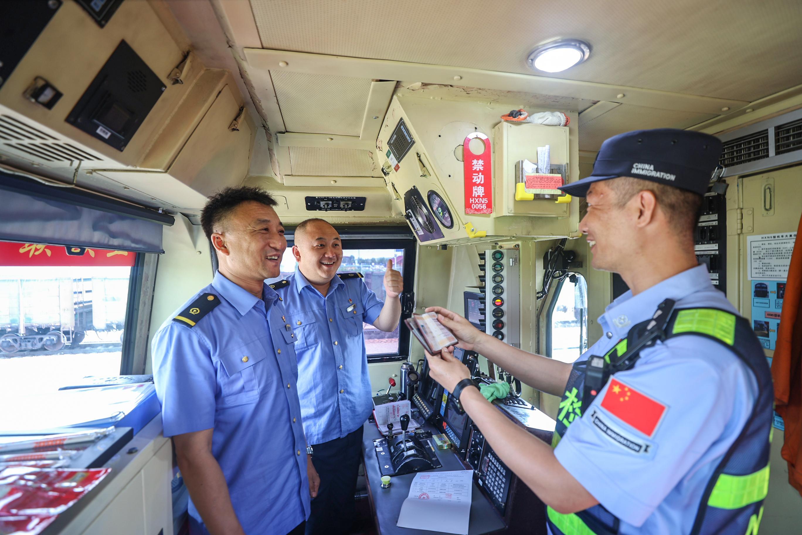圖為滿洲里邊檢站移民管理警察高效護航中歐班列獲點贊。