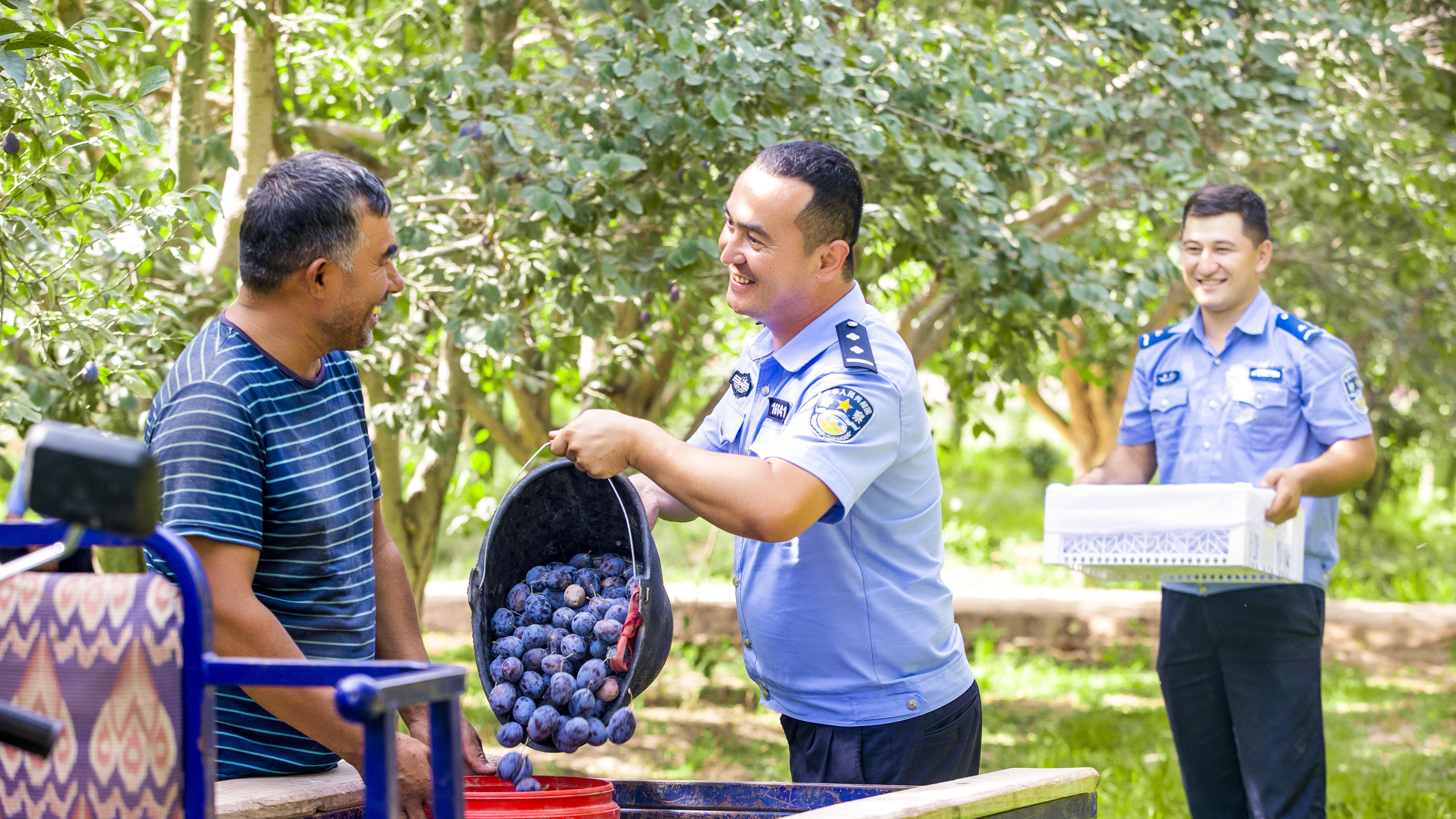 今年,吐?tīng)栠d種植的新梅個(gè)頭勻稱、甜度達(dá)標(biāo),收購(gòu)商們搶著要。吐?tīng)栠d高興地見(jiàn)人就說(shuō):“多虧了民警,不然哪有這么好的收成!”
