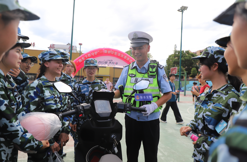 圖為民警走進(jìn)江西冶金職業(yè)技術(shù)學(xué)院,為在校軍訓(xùn)新生帶來一堂生動(dòng)的交通安全課。