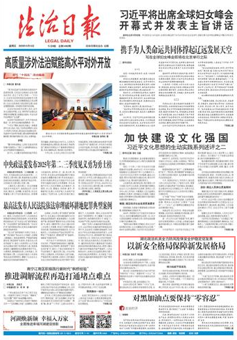 《法治日?qǐng)?bào)》記者了解到,“十四五”以來,湖北政法機(jī)關(guān)認(rèn)真落實(shí)總體國家安全觀,全力以赴防風(fēng)險(xiǎn)、保安全、護(hù)穩(wěn)定、促發(fā)展,堅(jiān)定不移抓法治、優(yōu)環(huán)境、促發(fā)展,為全省加快建成中部崛起重要戰(zhàn)略支點(diǎn)提供了有力安全保障和法治支撐。