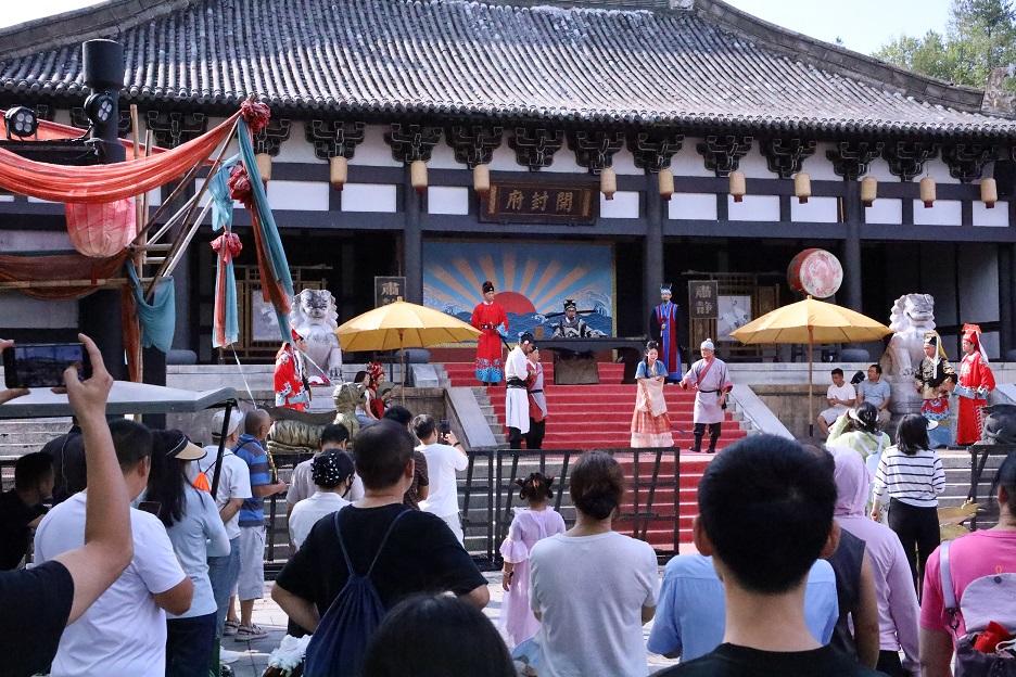 這是浙江省東陽(yáng)市人民法院與橫店影視城聯(lián)手打造的一場(chǎng)以包公審案為主要內(nèi)容的普法演藝秀。