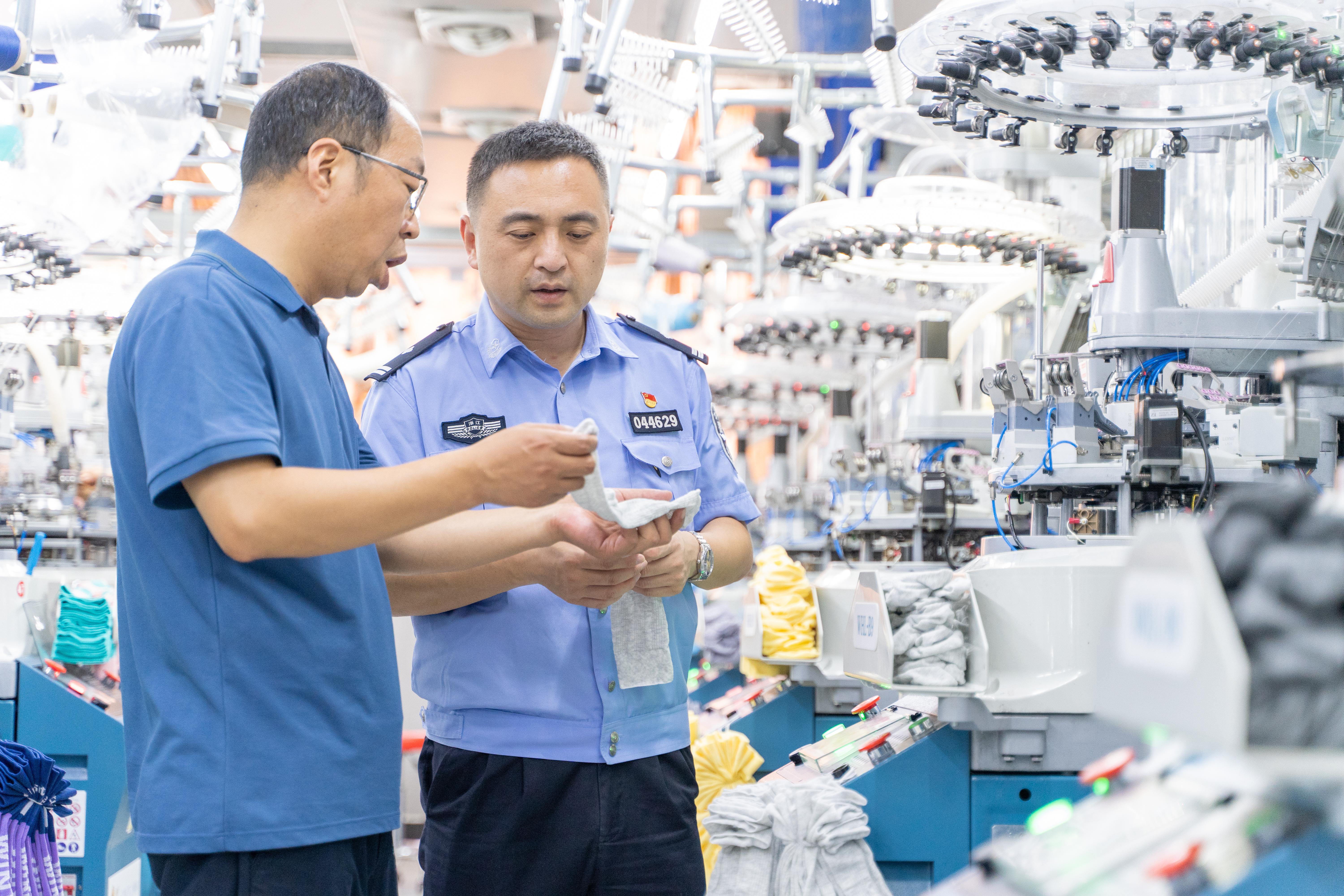 在大唐派出所工作期間,他還將區(qū)域品牌護(hù)航這套妙方帶到襪都,面對(duì)大唐襪業(yè)品牌被侵權(quán)、小微企業(yè)生存發(fā)展困難等實(shí)際問(wèn)題,推出“助微強(qiáng)鏈”產(chǎn)業(yè)提升項(xiàng)目,不僅建立了警企聯(lián)絡(luò)室、知識(shí)產(chǎn)權(quán)保護(hù)工作室等實(shí)體平臺(tái),還形成了“事前普法、事中打擊、事后維權(quán)”的全流程服務(wù)閉環(huán):邀請(qǐng)知識(shí)產(chǎn)權(quán)專(zhuān)家開(kāi)展培訓(xùn),創(chuàng)建“平安車(chē)間”,建立企業(yè)內(nèi)的聯(lián)防聯(lián)動(dòng)機(jī)制……短短一年時(shí)間上門(mén)送教1000余次,化解涉企風(fēng)險(xiǎn)隱患500余起。