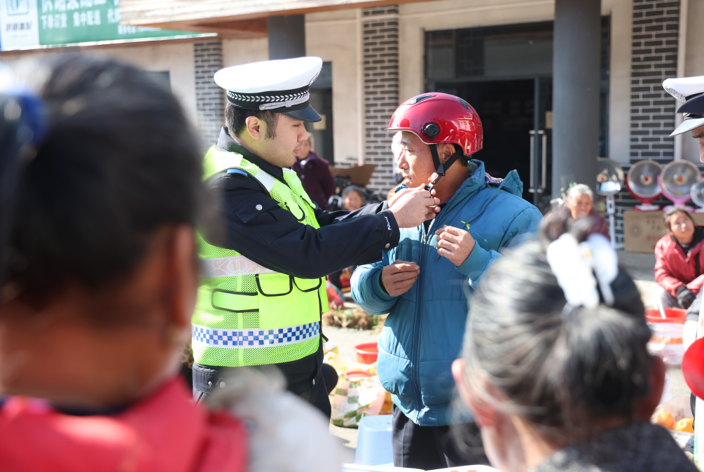 連日來,江西省贛州市公安局交管支隊(duì)宣傳小分隊(duì)走進(jìn)鄉(xiāng)鎮(zhèn)集市,以互動(dòng)問答、喇叭宣講、現(xiàn)場(chǎng)示范戴頭盔等方式,向村民普及“證件齊、戴頭盔、不酒駕”等出行規(guī)則,把交通安全知識(shí)送到群眾身邊,筑牢鄉(xiāng)村出行安全防線。