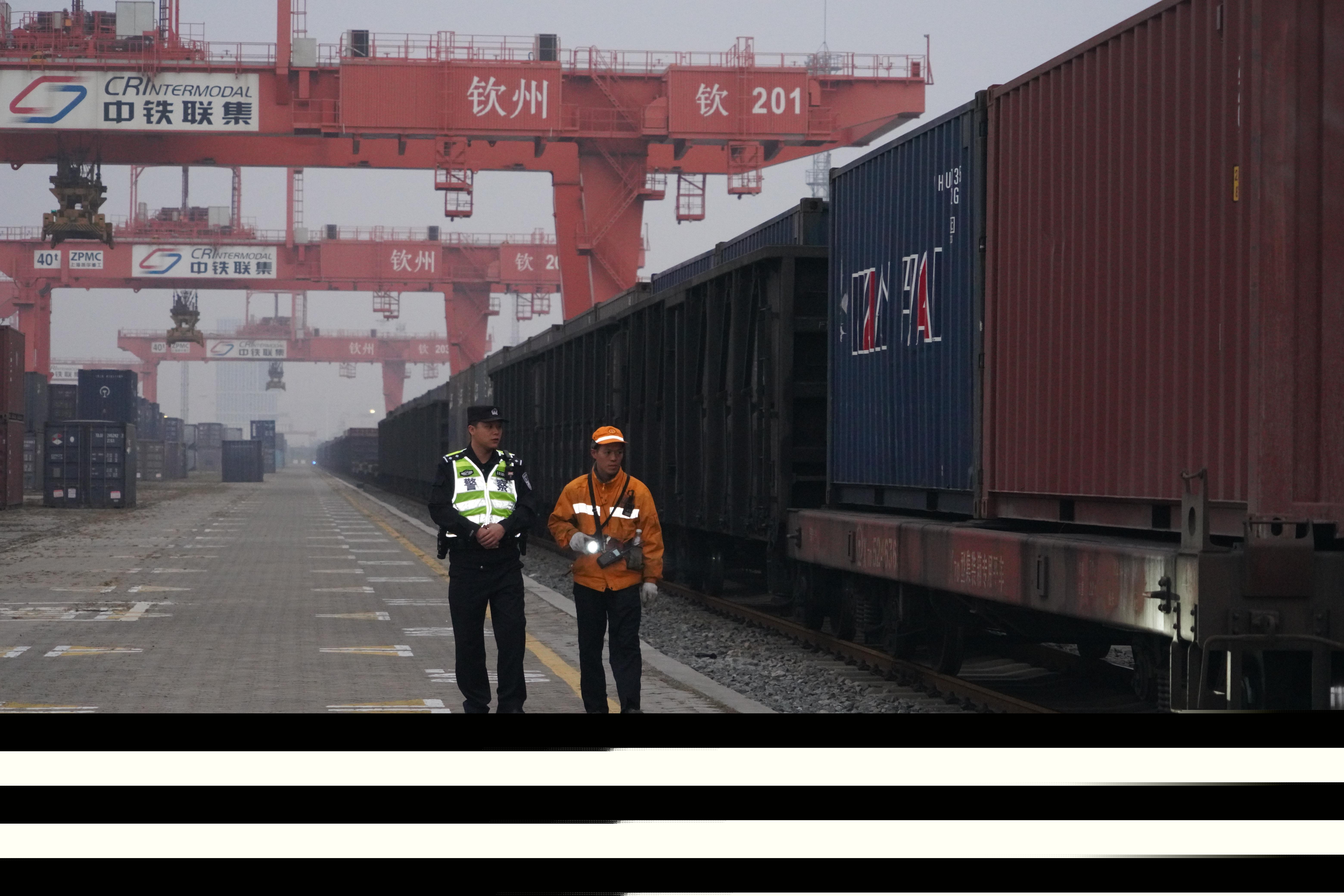 圖為李浩偉和鐵路職工檢查貨場。陳大鵬 攝