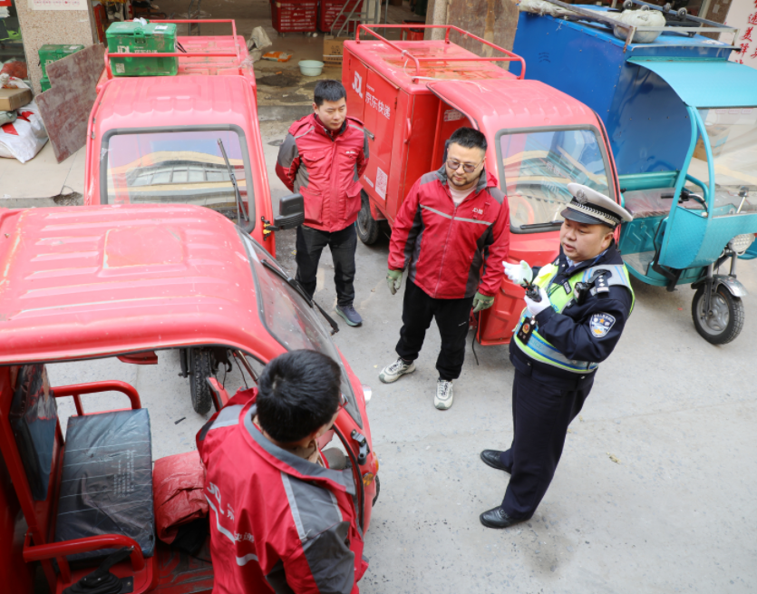 連日來,江西省九江市公安局交管支隊潯陽大隊組織民警深入轄區(qū)快遞企業(yè),結(jié)合春運后期道路交通安全形勢,開展節(jié)后“開工第一課”、交通安全隱患大排查等系列活動,從源頭上消除道路交通安全隱患。