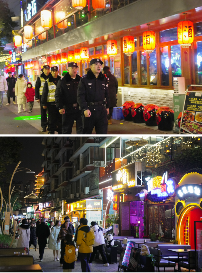 北京的王女士和朋友來成都旅游,晚上到九眼橋的一家小酒吧小酌幾杯,錦江邊閃爍的霓虹燈、清新的民謠調(diào)、獨(dú)具特色的成都小吃,讓王女士真正感受到了生活在成都的“巴適”。而在享受這份“巴適”的同時,還有一群默默守望平安的巡邏隊(duì)給他們留下了深刻印象,“在這里能看到很多警察,他們守護(hù)著我們的安全,我們心里覺得很踏實(shí)?!蓖跖空f。